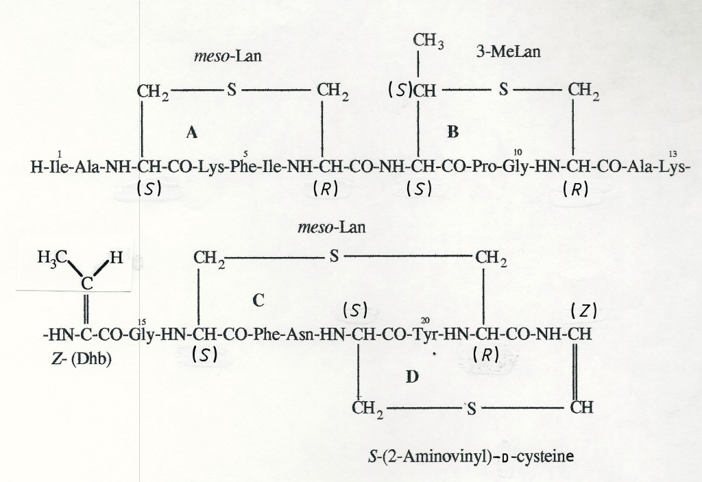 G. Jung (1991). Lantibiotics – Ribosomally Synthesized Biological Active Polypeptides containing Sulfide Bridges and α, β-Didehydroamino Acids, Angew. Chern. 103, 1067-1084; Angew. Chern. Int. Ed. Engl. 30, 1051-1068.